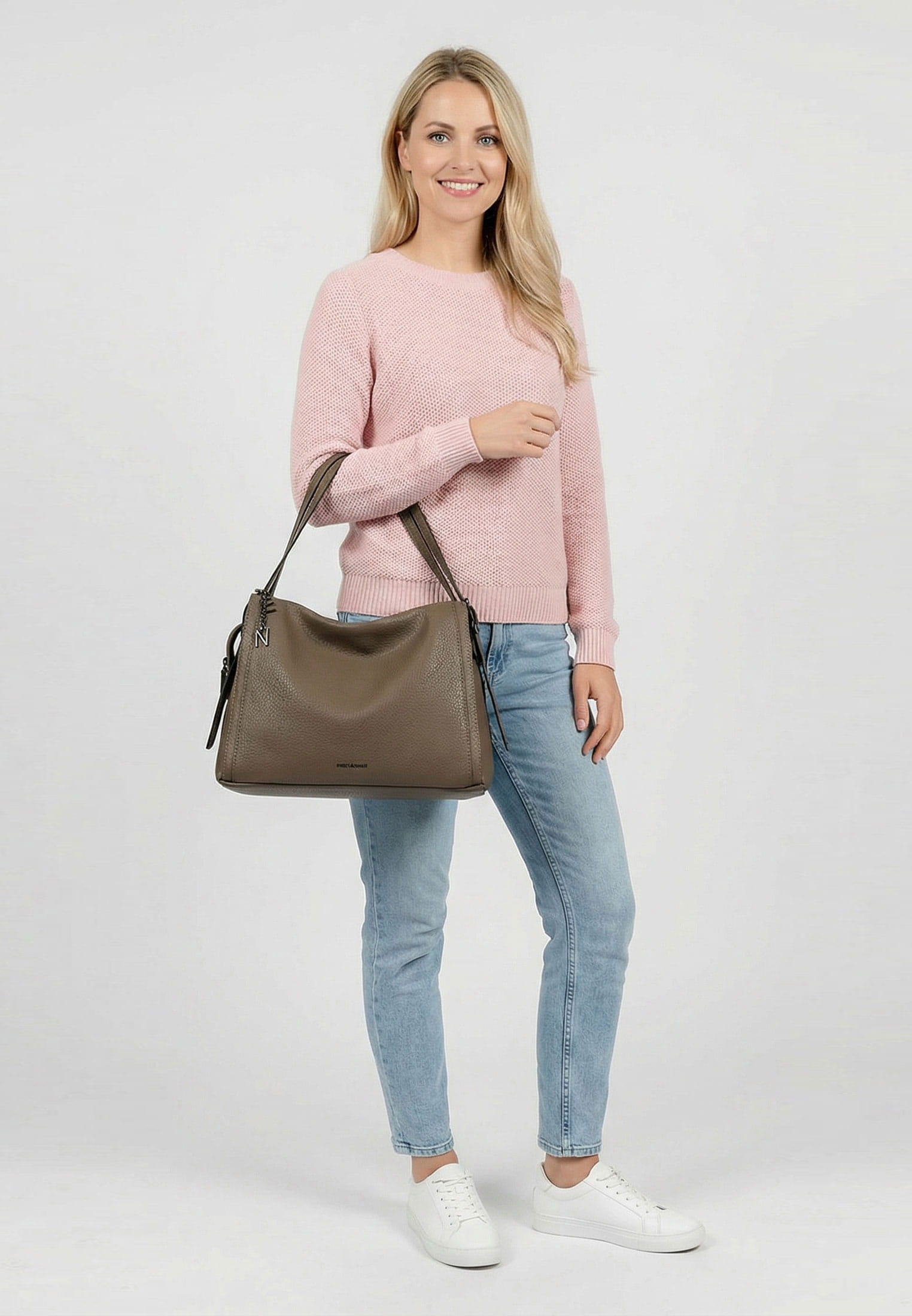 Unsere attraktiven Accessoires komplettieren jeden Stil und lassen sich toll kombinieren. Unser Shopper hat übersichtliche Hauptfächer und eine Reißverschluss-Mittelwand, die praktisch für die geschützte Aufbewahrung wichtiger Dinge ist. Das Rückfach mit Reißverschluss verschafft Ihnen ausreichend Platz und garantiert jederzeit ein unkompliziertes Zugreifen auf Ihre Habseligkeiten. Das Modell E&N Harleen ist von der Haptik eher weich und daher wirklich angenehm zu tragen. Eine Logo-Prägung schmückt optisch und hebt das besondere Design dieses neuen Favoriten hervor. Über der Schulter ist dieses Modell mit den zwei abnehmbaren Tragegriffen zu tragen. Dank der verschiedenen Tragevarianten ist dieses Modell so wandelbar wie Ihr Alltag und fügt sich perfekt in jede Situation ein. Ob der übliche Plunder, der einfach in einen Shopper gehört, oder ein kleiner Einkauf - ausreichend Platz bietet das große Modell auf jeden Fall.