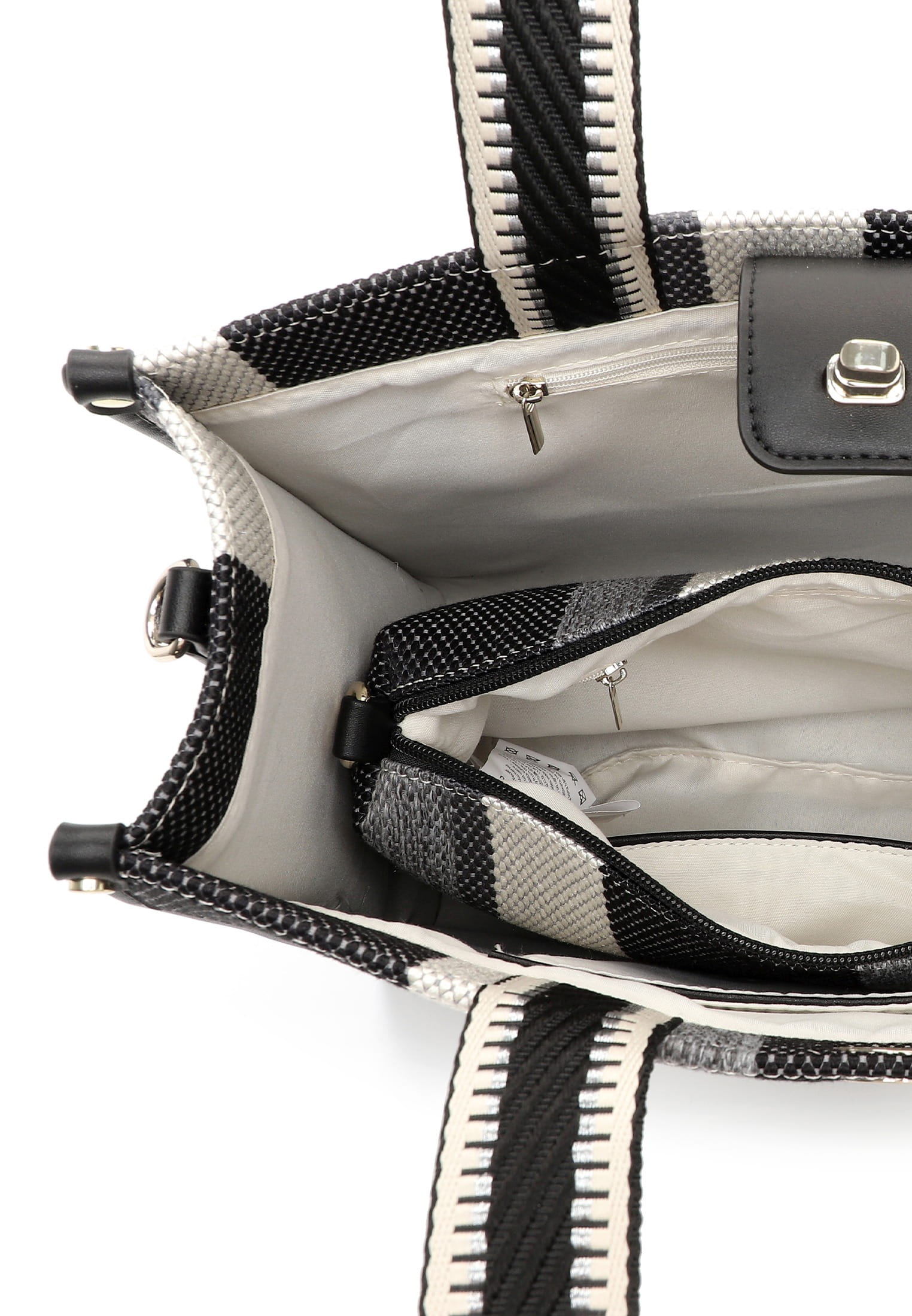 Eine Handtasche ist der Spiegel unserer Persönlichkeit. Ob aufgeräumt oder leicht chaotisch - man muss sie einfach lieben! Unser Shopper E&N Jasmin kommt in Web-Optik mit Logo-Patch und sieht einfach toll aus. Mit E&N Jasmin lässt sich ganz einfach ein lässiges Outfit zaubern, das auch bei Freunden gut ankommt. Ein Shopper, auf den man zählen kann. "Bag in Bag" - hier überrascht ein elegantes Funktionstaschensystem, dem es gelingt, praktisch und gleichzeitig ästhetisch zu sein. "Bag in Bag" ist die Lösung für alle, die gerne spontan sind. Braucht man unerwartet etwas mehr Platz, macht die flexible Handtasche im aufregenden Alltag alles mit: Aus Eins mach Zwei - Shopper und Umhängetasche. Die Innentasche herausgenommen und mit dem beiliegenden Schultergurt umgehängt bietet der große Shopper wieder genug Platz für alles, was kommt. Ganz schön praktisch - die Feinsynthetik ist schön pflegeleicht. Dank eines mit Drehschloss verschließbaren Hauptfaches sind Ihre Sachen zusätzlich geschützt. Mit seiner Web-Optik und dem mehrfarbigen Design ist der hochwertige Shopper ein echter Hingucker.