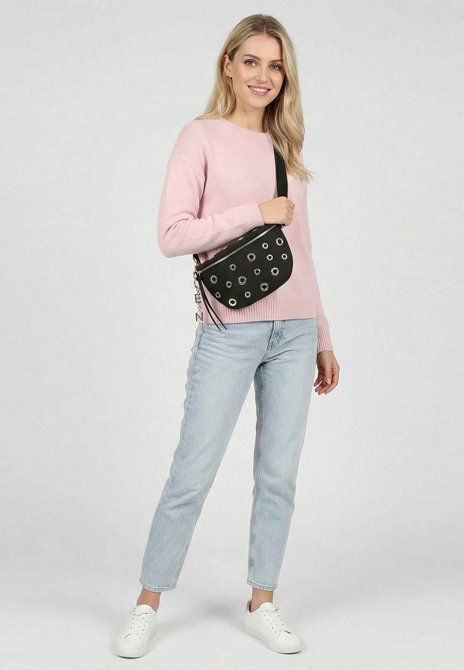 Umhängetasche E&N Heidrun, Feinsynthetik, mit Logo-Anhänger